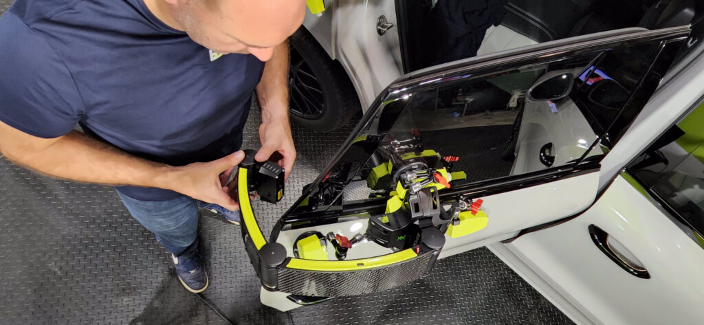 The complex shape of the body opening, door profile, windowsills, seal shapes and installation methods are all subject to assembly tolerances. Even with recent technologies, there is the need for a accurate, quick scan to establish the geometry. This would highlight any out of tolerance elements. The measurement digitized the mating parts and allowed comparing the data to the nominal cad model. With these few measurements, the next action can be determined.-