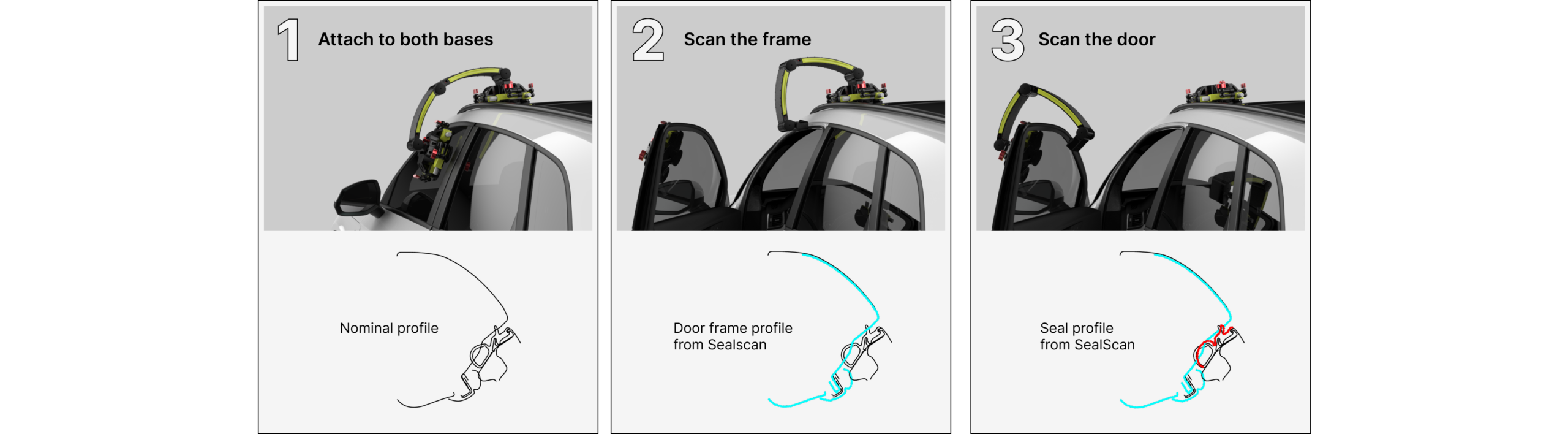 SealScan offers a way to measure the real interaction between door, seal, trim, and sheet metal directly on the assembled vehicle, in minutes rather than days.