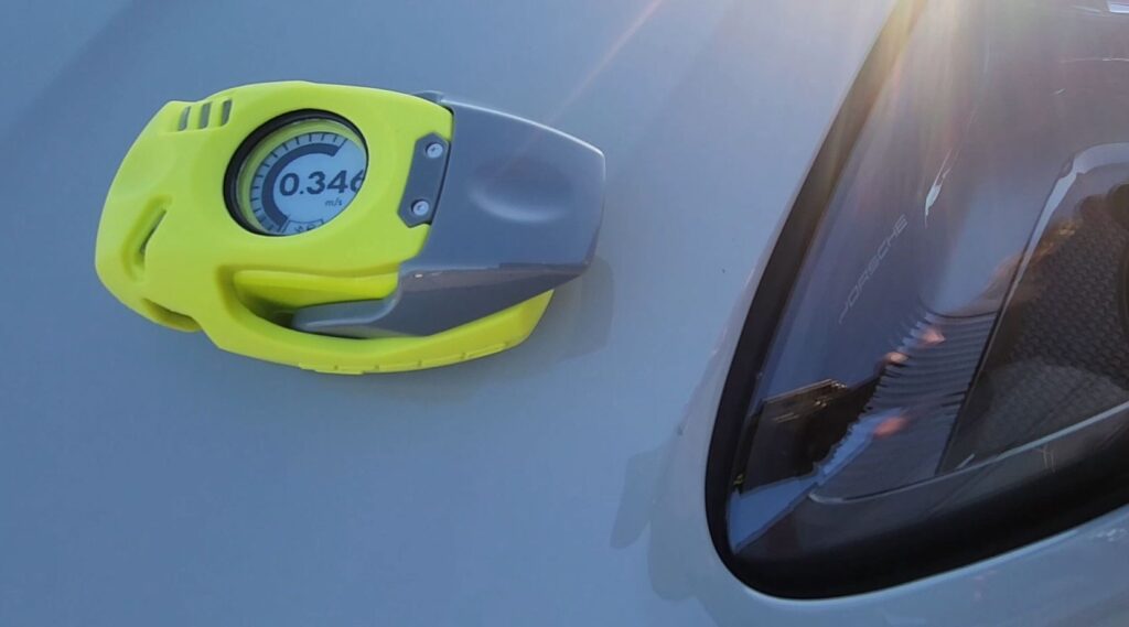 The SpeedPod or EnergyPod is placed on the door in the closed position and the handle is pulled. To eliminate the influence of the operator, it can be performed from the inside or with a small tool to activate the outside door handle. The system will detect sudden movement and report the maximum speed. The simplicity of this test can substitute a much harder static closing effort test. The static closing test or push test might require the operator to push upwards from 300N. This would be a burden on the operator if this were part of a standard operation.